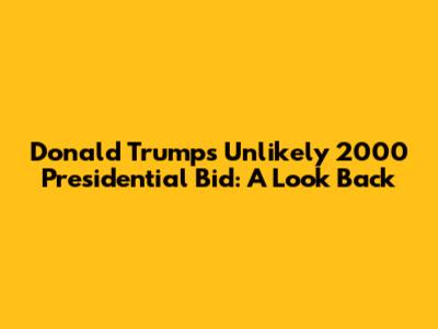 The 2000 presidential exploration, although short-lived, had a lasting impact on Trump's political trajectory and his future campaigns. It provided him with valuable experience in campaigning, fundraising, and communicating his message to the public. He learned how to navigate the media landscape, build a loyal following, and identify the key issues that resonated with voters. He also demonstrated his ability to generate significant media coverage and to disrupt the established political order. Trump's 2000 campaign also laid the groundwork for his successful 2016 presidential bid. He refined his policy positions, honed his communication strategies, and built relationships with key political players. He also solidified his brand as a populist outsider who was willing to challenge the status quo. The lessons learned from the 2000 campaign served him well in 2016, enabling him to capitalize on the political climate and achieve a stunning victory. Although Donald Trump's 2000 presidential bid may be considered a footnote in the history books, its significance should not be underestimated. It was a crucial step in his evolution from a real estate mogul and reality TV star to a political force.